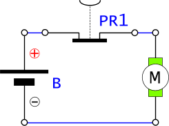 Esiste anche un’altra differenza; il motorino ha un’inerzia maggiore della lampada, ovvero continua a girare per alcuni secondi anche dopo che abbiamo tolto l’alimentazione. The drawings are similar to those created for the lamp; in this case, instead of turning on a lamp, the motor will run. There is another difference: the motor has inertia effect and it will rotate for some seconds also after we took off the supply. |