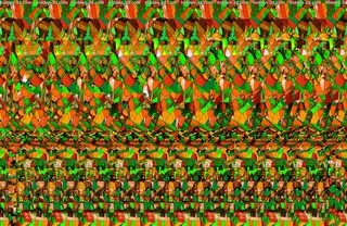 Ma lo stereoscopio a specchi può essere utilizzato anche per vedere gli stereogrammi. Qui di seguito ne trovi due presi in prestito dal sito hidden-3d.com In questo caso l'immagine prende corpo solo se l'immagine viene osservata correttamente. Senza entrare in dettagli puoi comunque provare a vedere le immagini seguenti con lo stereoscopio ed all'improvviso vedrai delle immagini assolutamente nascoste. |